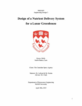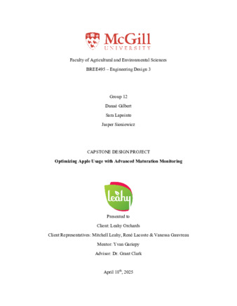 Bioresource Engineering students design, research, implement, and report on an engineering project of their choice. The resulting detailed reports form the capstone project for the B.Eng (Bioresource) degree..