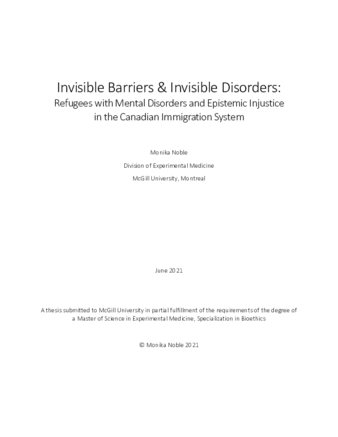 Invisible barriers & invisible disorders: refugees with mental disorders and epistemic injustice in the Canadian immigration system