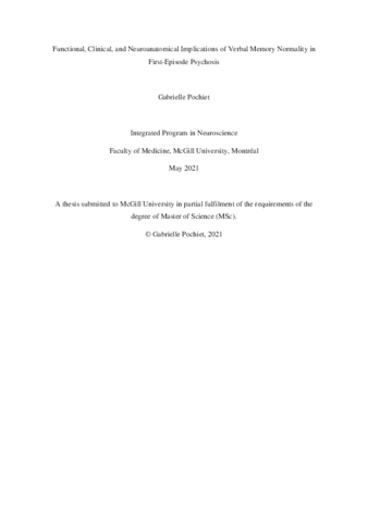 Functional, clinical, and neuroanatomical implications of verbal memory normality in first-episode psychosis