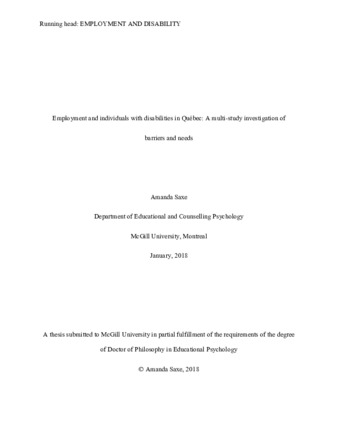 Employment and individuals with disabilities in Québec: A multi-study investigation of barriers and needs
