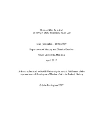 Then let him be a God: the origin of the Hellenistic ruler cult