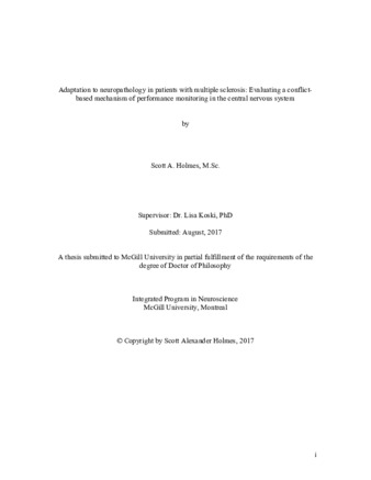 Adaptation to neuropathology in patients with multiple sclerosis: Evaluating a conflict-based mechanism of performance monitoring in the central nervous system