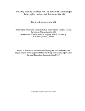 Building validity evidence for the advanced laparoscopic suturing curriculum and assessment (ALS)