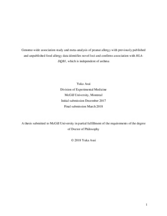 Genome-wide association study and meta-analysis of peanut allergy with previously published and unpublished food allergy data identifies novel loci and confirms association with HLA-DQB1, which is independent of asthma