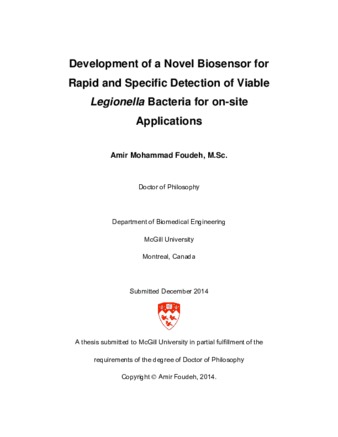 Development of a novel biosensor for rapid and specific detection of viable «Legionella» bacteria for on-site applications