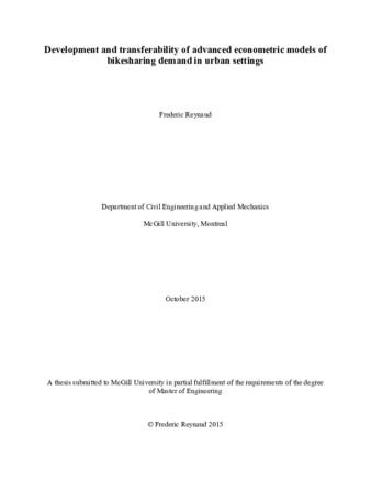 Development and transferability of advanced econometric models of bikesharing demand in urban settings
