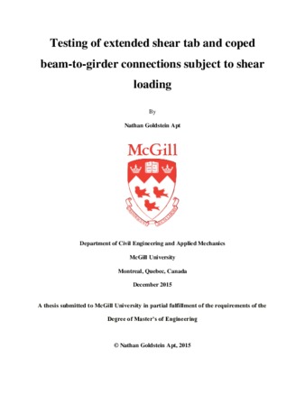 Testing of extended shear tab and coped beam-to-girder connections subject to shear loading