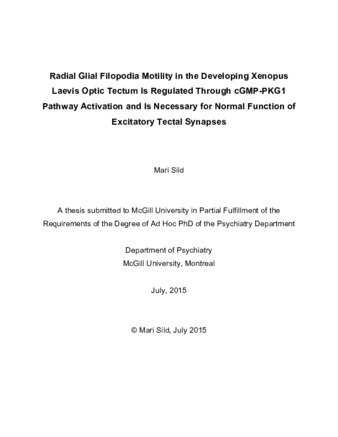 Radial Glial Filopodia Motility in the developing Xenopus Laevis Optic Tectum is regulated through the cGMP-PKG1 pathway activation and is necessary for the normal function of the Excitatory Tectal Synapses