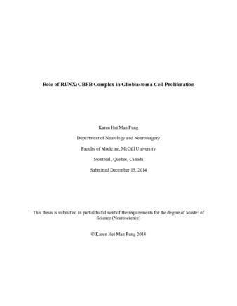 Role of RUNX:CBFB complex in glioblastoma cell proliferation